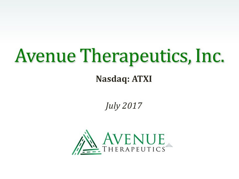 Avenue Therapeutics, Inc. Nasdaq: ATXI July 2017