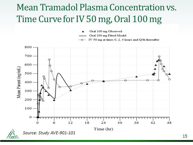 Mean Tramadol Plasma Concentration vs. Time Curve for IV 50 mg, Oral 100 mg 15 Source: Study AVE - 901 - 101